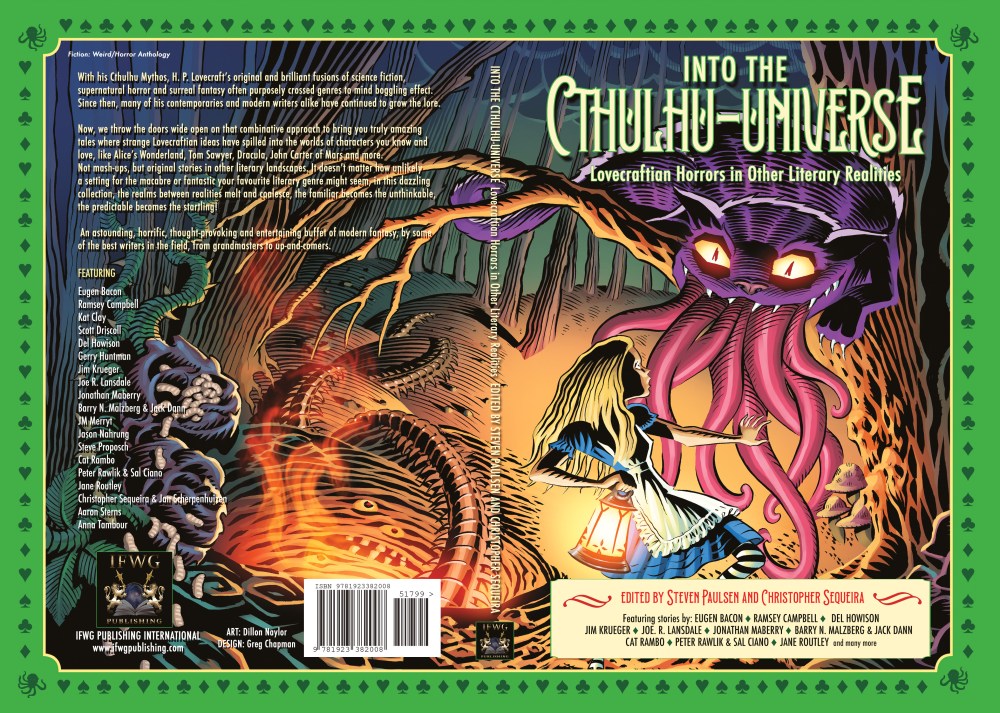 Now, we throw the doors wide open on that combinative approach to bring you truly amazing tales where strange Lovecraftian ideas have spilled into the worlds of characters you know and love, like Alice’s Wonderland, Tom Sawyer, Dracula, John Carter of Mars and more.